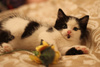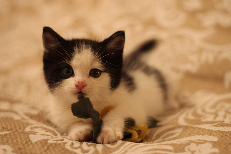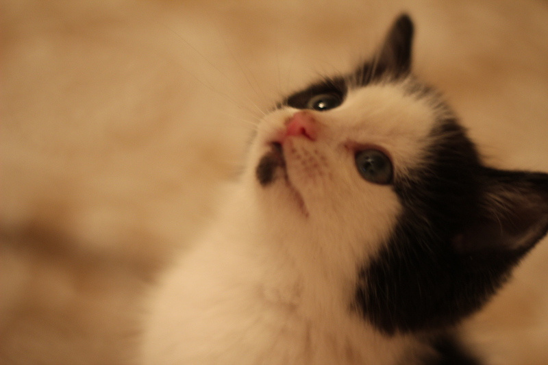 Нежный-нежный, наивный-наивный... абсолютно ручной и беззащитный.Котенок ориентирован на человек, ищет в нем любовь и защиту, практически не слазит с рук. А в остальном, обычный ребенок с хорошим аппетитом, весьма игривый и нереально нежный.