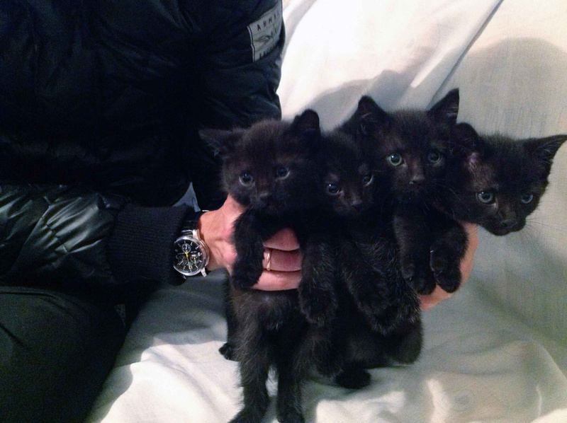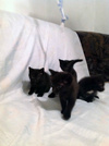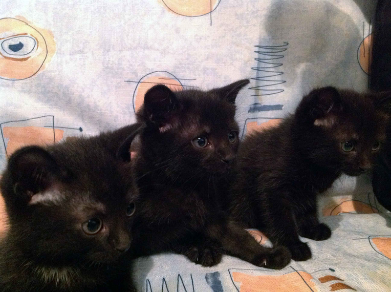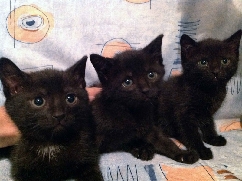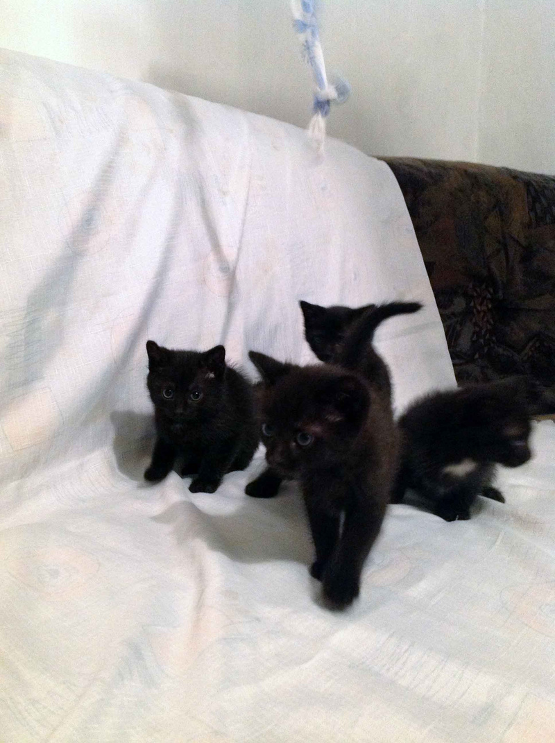 Четыре черных котенка ищут любящих и заботливых хозяев.