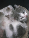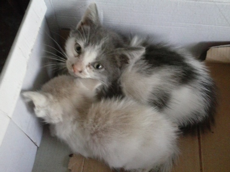 В подъезд подбросили двух котят, на вид - около 3 месяцев. Воинственные бабули пытались их выселить, поэтому коты транспортированы на время домой. Сегодня их осмотрит ветеринар.
