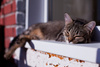 Нашли Юм-юм холодным осенним днем, кошка была очень худой, со сломанным клыком, вероятно, однажды выпала из окна и была вынуждена скитаться. Старые хозяева не нашлись, теперь ищем ей новых и лучших.