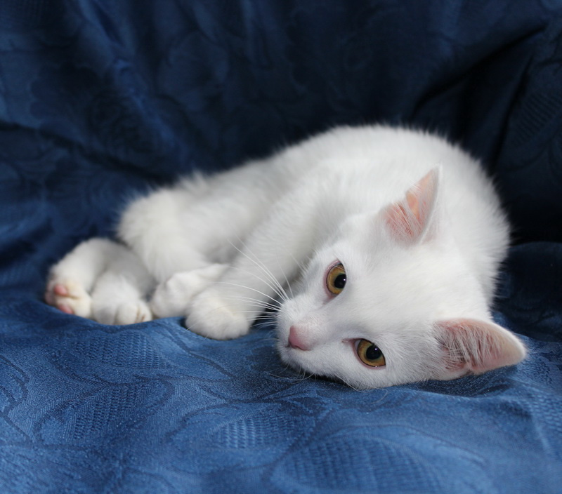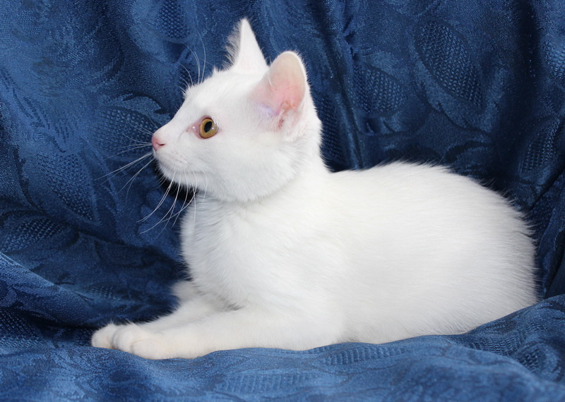 Котенок Снежок, ему примерно 4 месяца. Очень воспитанный котенок, лоток освоил сразу. Обработан, хорошо кушает, много играет. А главное очень любит человек, обнимается и ласкается. Шубка у него чисто белая и шелковистая. В нужное время поможем со стерилизацией.