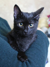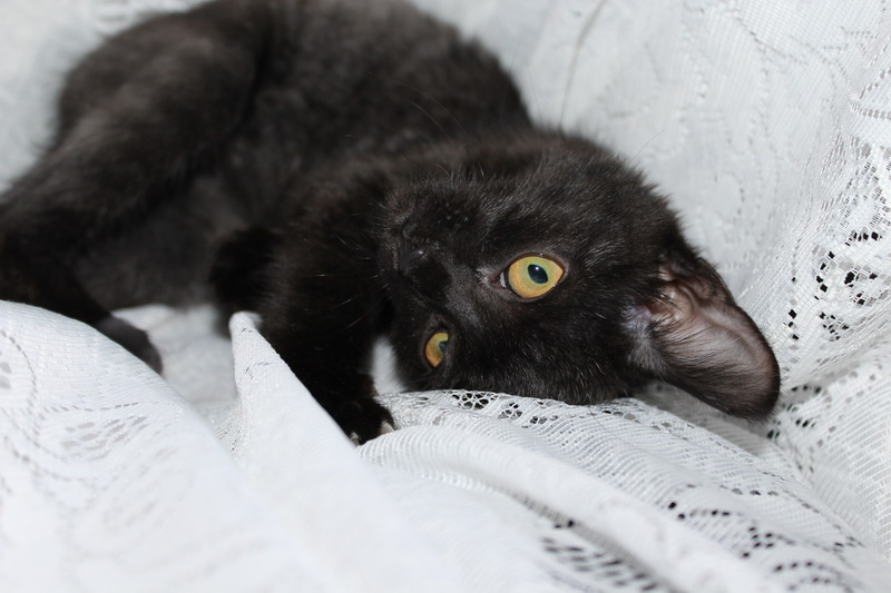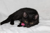 Котенок девочка, совсем новенькая имя еще не пришло. Ей примерно 2-3 месяца. Совсем малышка, осваивает горшок, отлично кушает, любопытная, игривая. Шубка у нее шикарного дымного окраса. Это значит сверху она черная, а подшерсток светлый.