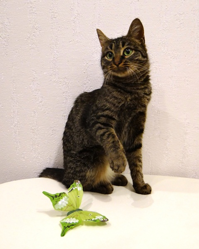 Она представительница вида обычных домашних кошек. Имеет замечательный мурчащий и ласковый характер.