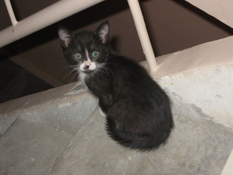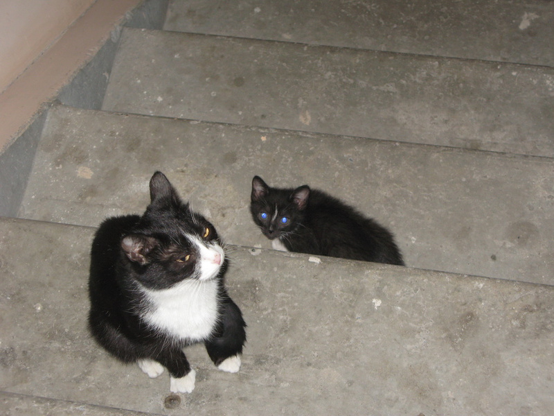 Котятам уже месяц или больше. На вид чистенькие. Видимо кто то выкинул. Разбегаются уже в разные стороны, кошка не успевает собирать их. Кормит весь подъезд, едят все.