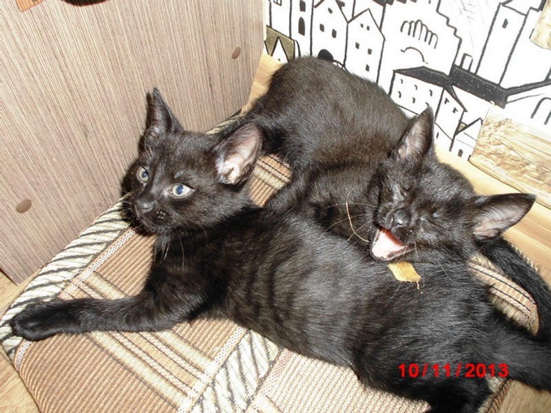 Котята домашние - сестра с дочкой забрала кошку с улицы, теперь пристраиваем котят. Котята очень интересные, хорошенькие, сообразительные,здоровы, ходят в лоток. Окрас черно-бурый, пол- мальчишки...Дали пока имена - Мишка и Язычок( во сне язычок смешно высовывает)...Звоните - 8-913-903-45-27, 8-983-315-59-96.