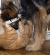 Беня оправдал все мои надежды, он ходит строго в лоток, хорошо кушает, пытается играть ( не совсем это еще получается, но ведь пытается), использует когтеточку. А какой он ласковый, совсем еще ребенок, доверчивый и любящий человека! А еще наш Беня учится жить с собаками, уже сейчас он доверяет дружелюбным собакам.