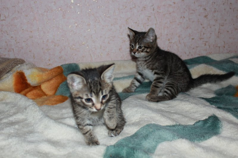 только нам нужны очень любящие и заботливые пап-мамы и друзья. нас трое серых полосатика, ток пузики у кого-то посветлее. 2 брюнета, с рыжими полосками, тигры, и сами видите - белый пятнышка