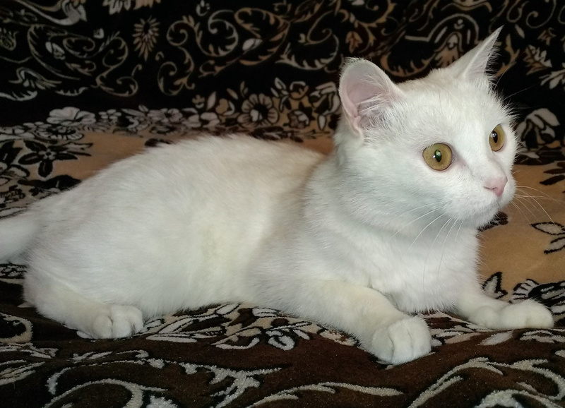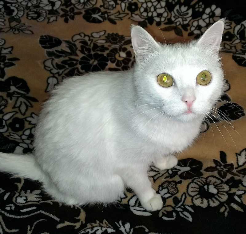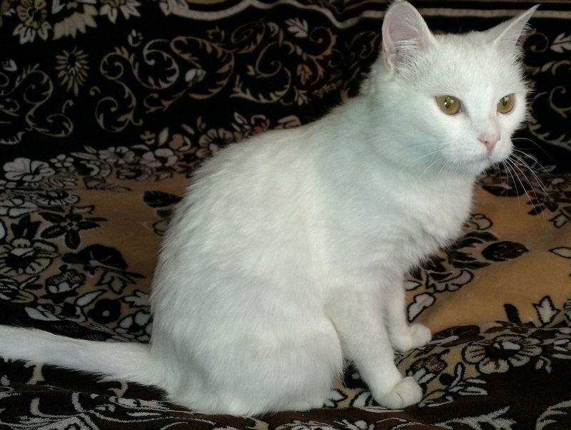 Девочка-Пеночка - чисто белая, молодая кошечка с янтарно-медовыми глазами ищет свою самую замечательную семью.