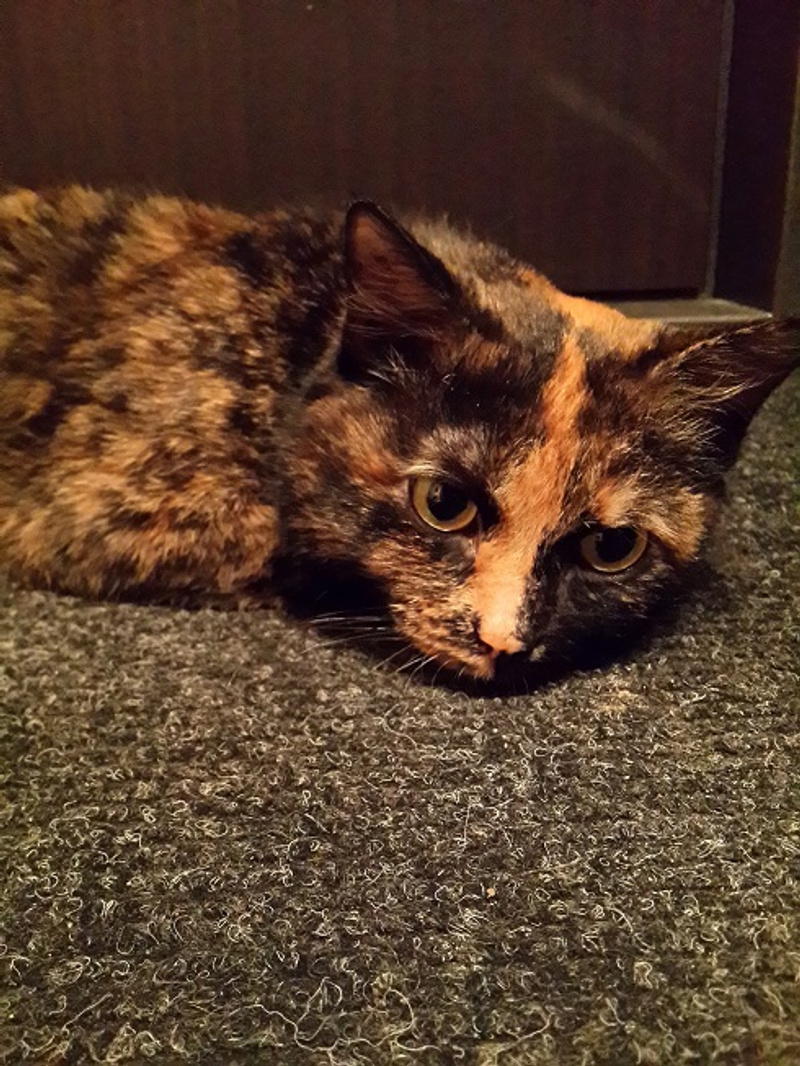 Девочку нашли знакомые 10 Ноября на Красном Проспекте. Она сидела у входа в магазин и дрожала от ветра и первого снега. Она была очень истощена, еле-еле могла сама передвигаться. Так же выяснилось, что у нее застарелый неправильно сросшийся перелом лапки, когда она еле ходила было очень заметно, что прихрамывает, сейчас она окрепла, поправилась на 2 кг и даже бегает, хромоту почти не заметно. Рентген смысла делать нет, по мнению врачей, т.к. операция в любом случае не гарантирует результат и только нанесет огромный вред и так настрадавщейся малышке. Так же малышка прошла полное обследование, дегельминтизацию и вакцинацию. Ей примерно с годик с небольшим (на фото она выглядит крупнее, чем в жизни). Она очень спокойная, ласковая, поначалу, немного пугливая, особенно хорошо кушает и спокойно спит, на руках может лежать часами. Малышка непривередлива, единственное, что ей нужно – это забота и ласка, ждет хозяйку/хозяина, которые станут ей настоящими родителями. Она верит, что шанс обрести тёплый дом есть у всех!