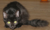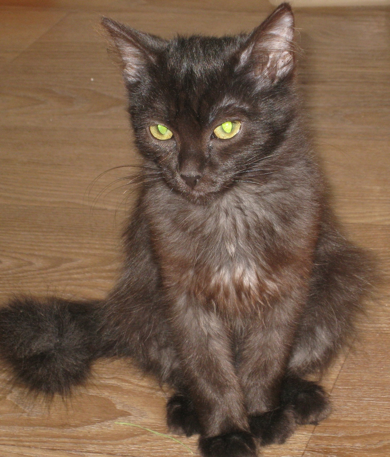 Шерсть окраса черный дым (со светлым подшерстком) по типу как у сибирских кошек.