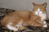 Ест профессиональные корма, но любит угощение отварной рыбкой.