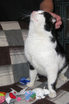 По характеру котик общительный. Умный. От человека безропотно терпит все обработки, в том числе уколы.