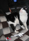 Пока сидит в клетке на передержке.