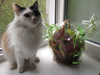 Кушает много (Royal Canin Sensible 33). И, так как Марфушка склонна к полноте, то, после того, как она наберет еще 1 кг (сейчас она весит 3,5 кг), ее нужно будет перевести на более диетический корм (например, для стерилизованных кошек).