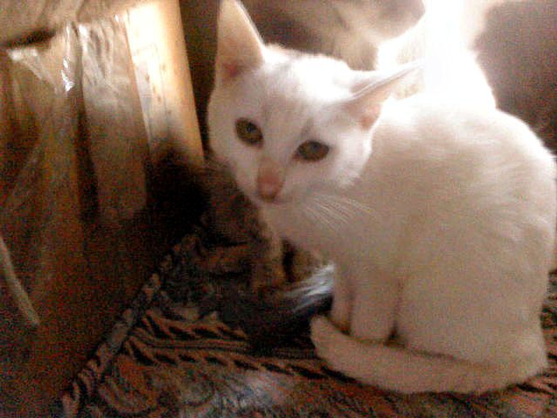 Лукреция-5 месяцев.Белая,гладкошерстная с темным пятнышком на голове и зелеными глазами.Очень красивая и умная.Самостоятельная и ласковая.Она идеально подходит для тех кому нужна спокойная,домашняя и воспитанная кошечка.Хорошо ладит с другими животными.Здорова,привита,приучена.Можно в квартиру,можно в частный дом.Отдается по договору.Подробности по телефону.