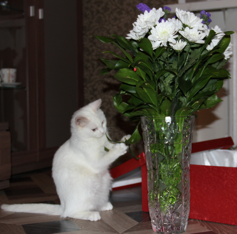 Общительная, сама приходит полежать на ручки, мурчит и требует ласки.