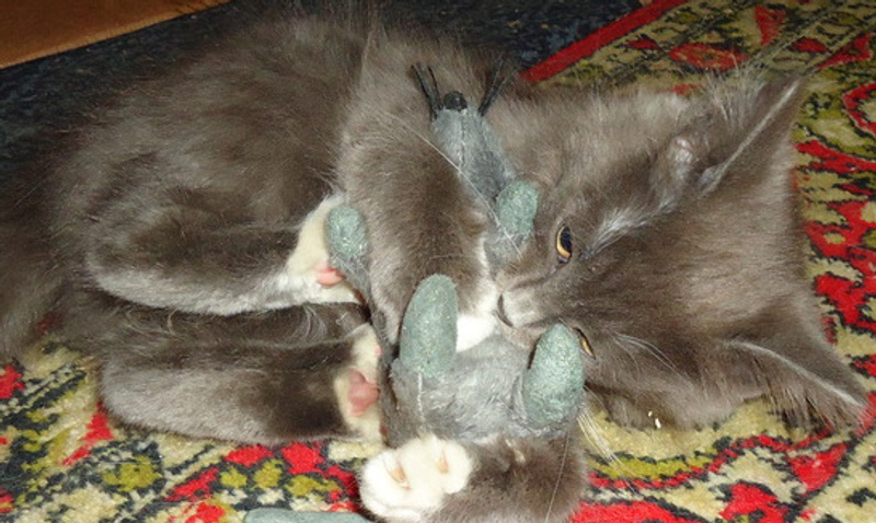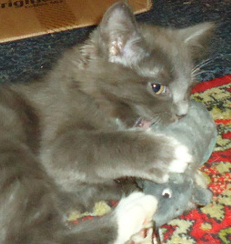 Сразу пошел в лоток. Обработан от паразитов. У-о-очень игручий!