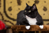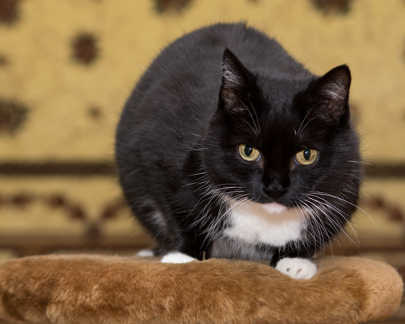 Стерилизована. Кушает сухой китикет, сырую рыбку, молочко.