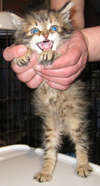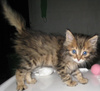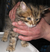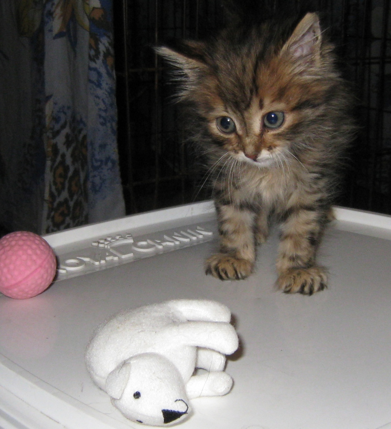Котенок-подкидыш. Мальчик. Осмотрен врачом, проглистогонен. Кушает влажный корм для котят. Лоточек освоил сразу