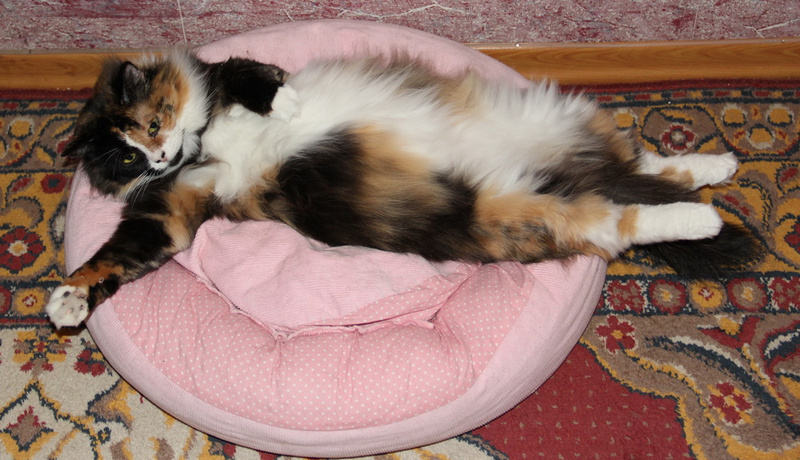 Ей около 3 лет. Стерилизована, ходит строго в лоточек, освоила искусство пользования когтеточкой.