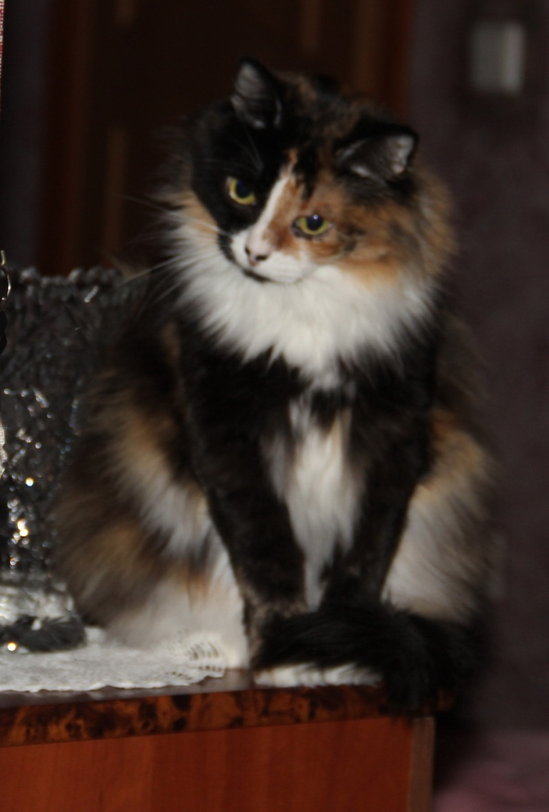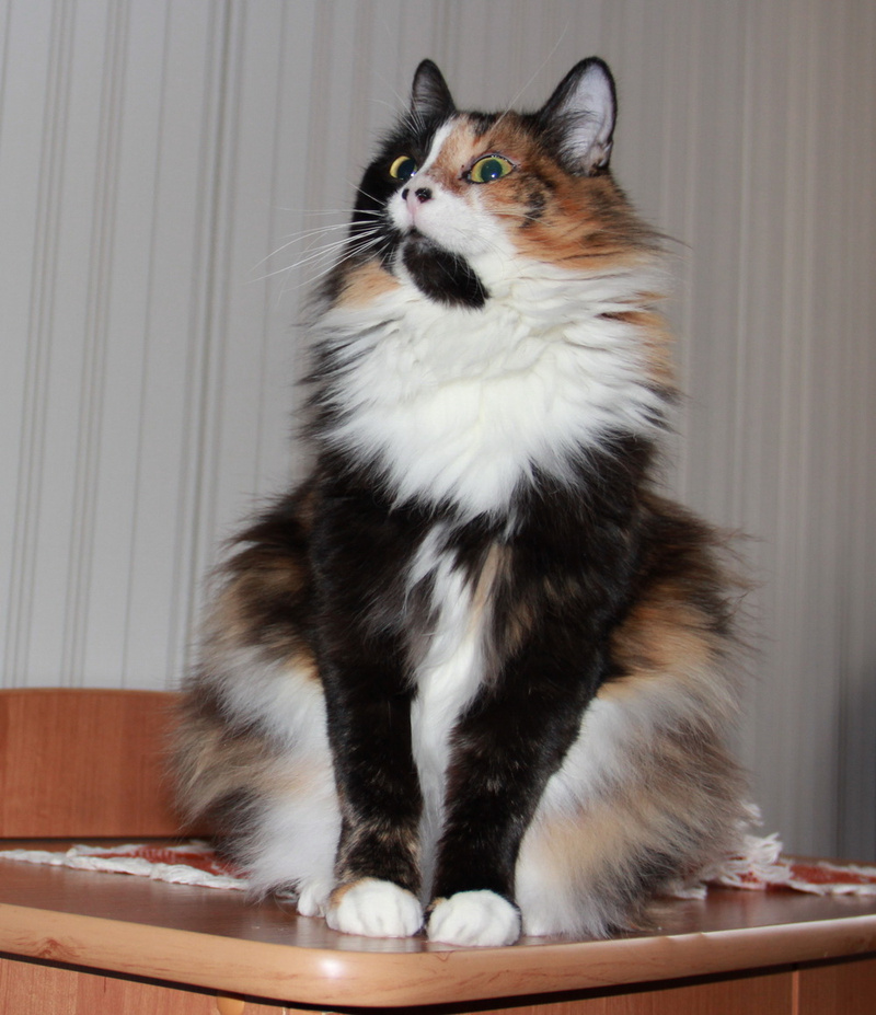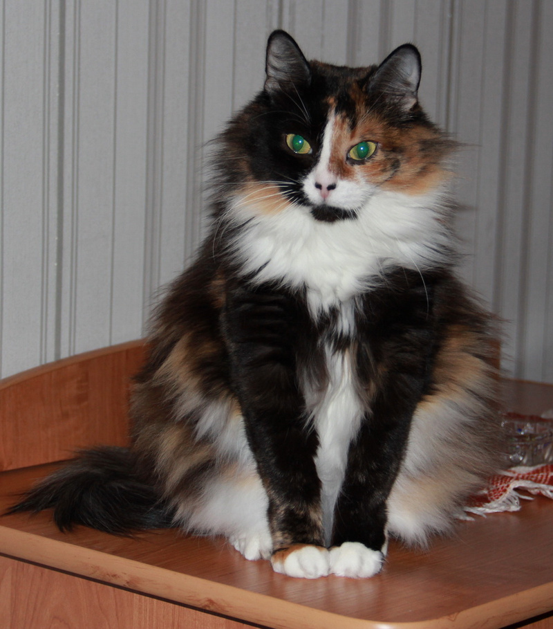 Всё при ней: шикарная трёхцветная шубка, огромные глаза, аккуратные ушки, пушистый хвостик.