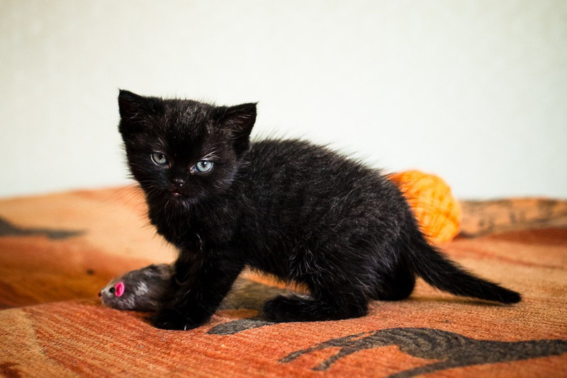 , он даже пока еще не очень крепко стоит на лапках, но уже вовсю играет с игрушками, любит носить в зубах мышек, гоняет мячики в кошачьем треке