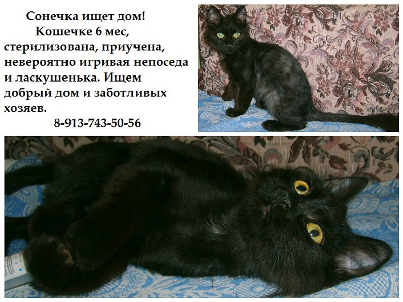 Ответ на сообщение Полупушистая чёрная пантерка 5-6 мес ищет добрый дом. пользователя Lnata