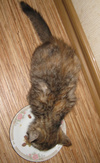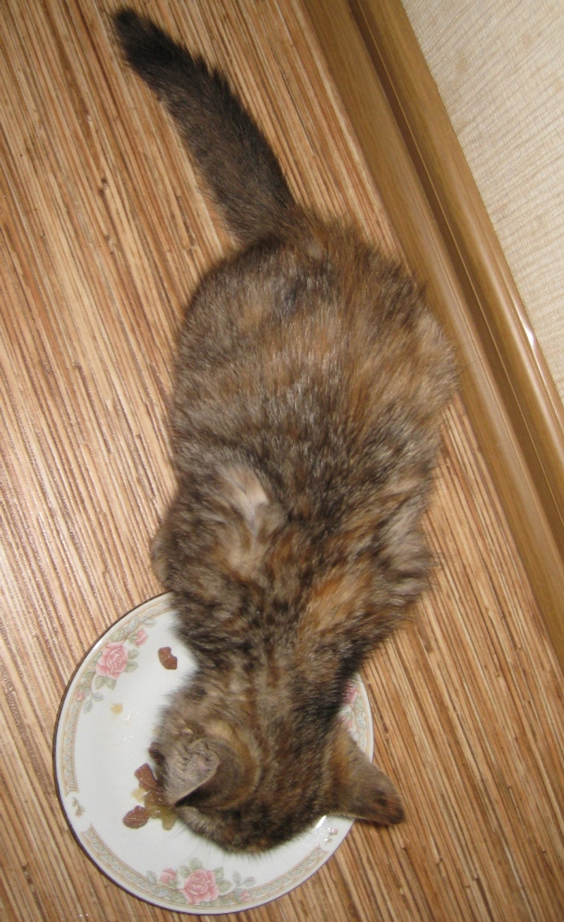 Кушает влажные корма для котят.