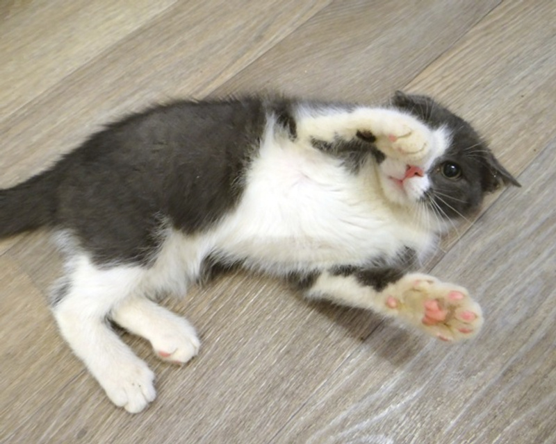 Ест сухой корм для котят, пользуется комкующимся наполнителем. Обработан от паразитов.