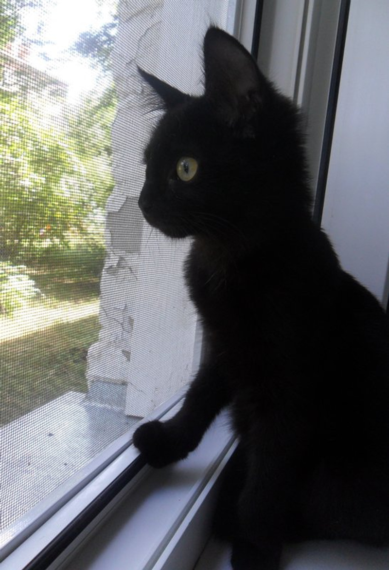 Люблю я черных, они, видать, меня тоже.... Вот такое "чудо" появилось у нас во дворе. Душа моя была не на месте, поэтому "чудо" "перекочевало" ко мне да и душа успокоилась....Имеем девушку приятной наружности, без единого белого пятнышка. Воспитанная, с горшком дружит, общительная. Ищем ей дом, семью.
