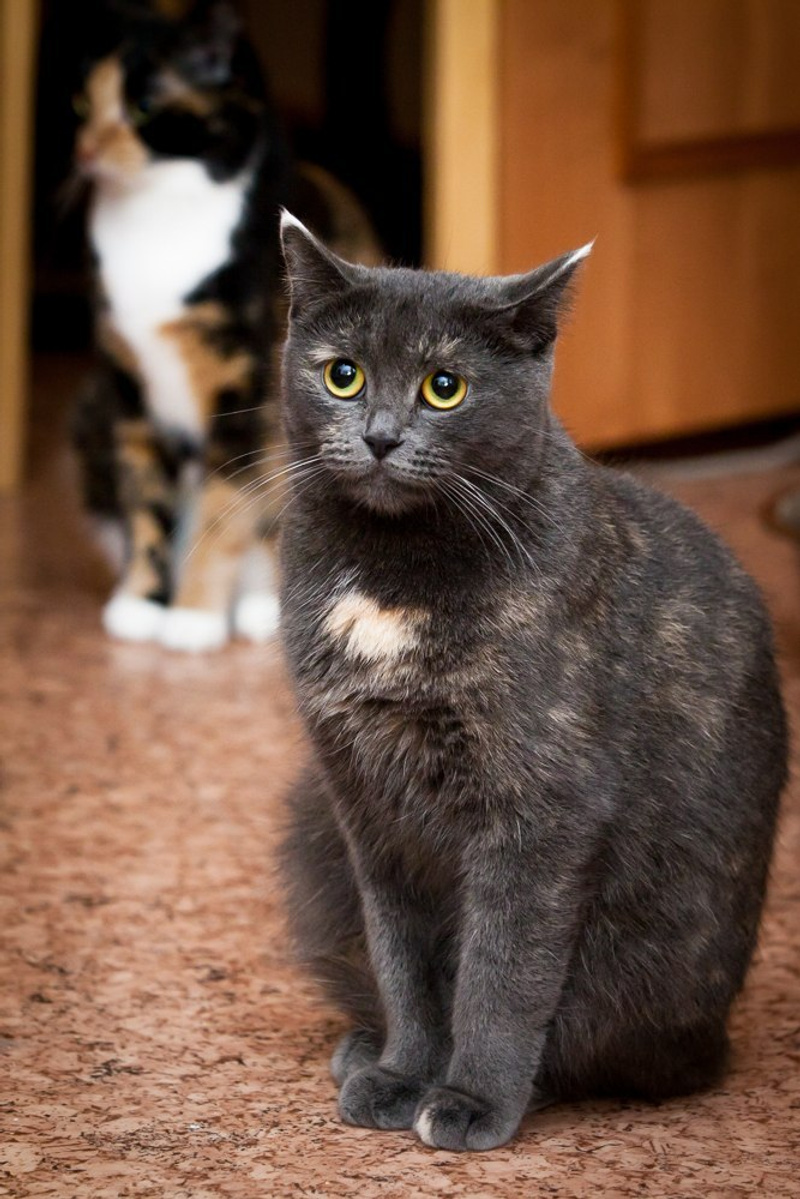 На руки не лезет и в целом ненавязчива, но очень отзывчива на ласку, с удовольствием подставляет почесать пузо. Встречает-провожает. За играми замечена не была, гонками по квартире не увлекается, в постель не лезет, но по столам ходит, любит высокие места. Горшок без проблем, приучена к сушке и когтеточке. Стерилизована.