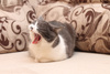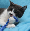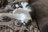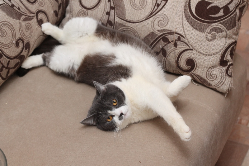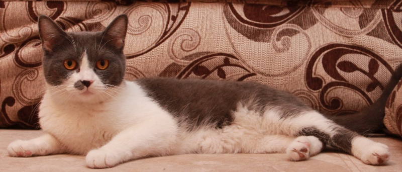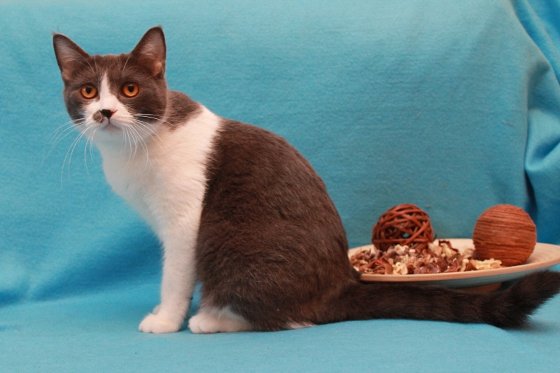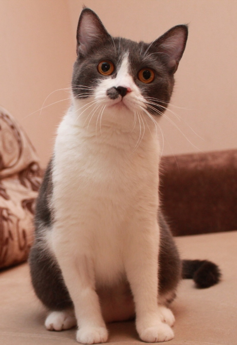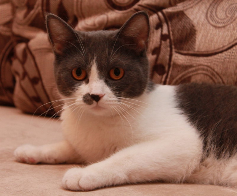 Малышке около года, совсем еще юная особа) Кошка удивительно "комфортная" и приятная во всех отношениях: очень ласковая, любит людей, игривая (особое предпочтение отдает различным махалкам)) Судя по внешности, в роду у нее были британы: очаровательные пухлые щеки и яркие глаза никого не оставляют равнодушными.
