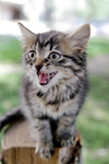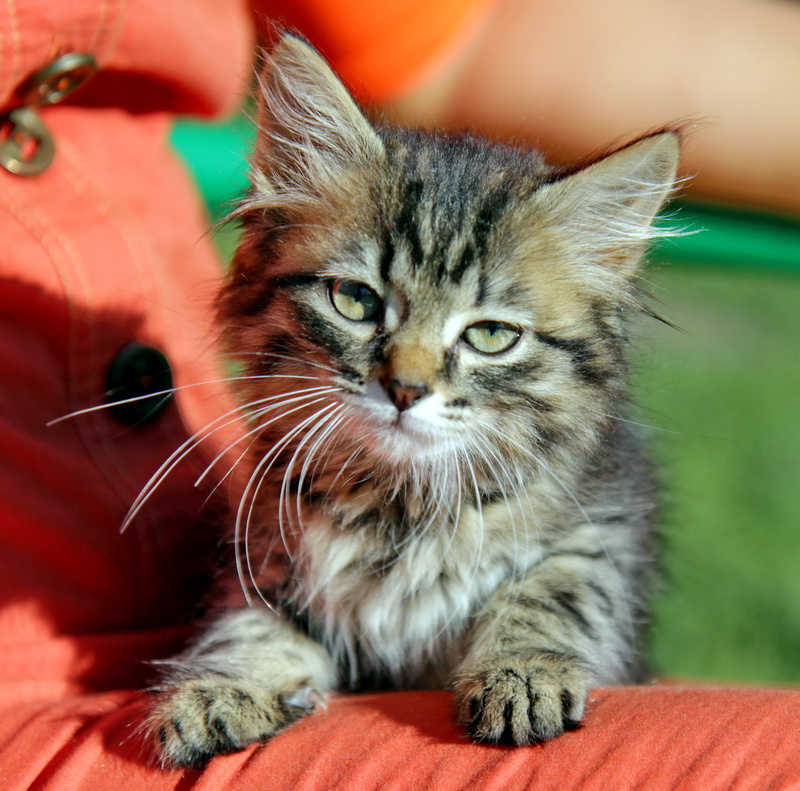 Малышке примерно месяц. Ее подкинули в подвал, но она умничка, отлично ходит в горшок, хорошо кушает и много играет.