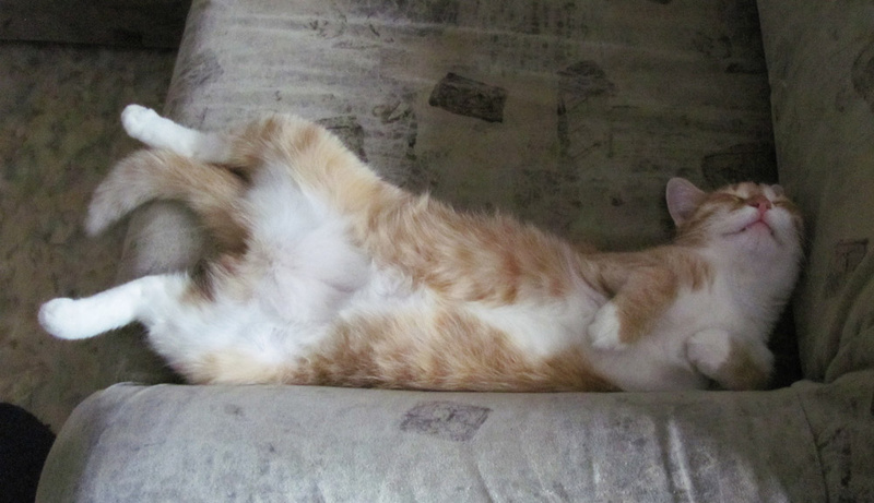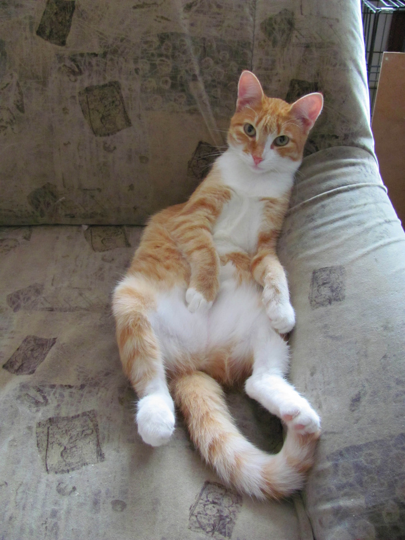 Изначально абсолютно дикая особа из подвала, боящаяся людей, но уже стала почти не отличима от домашней кошки (3 с половиной месяца на приручении на данный момент).