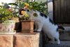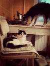 Скитания сформировали небольшую особенность поведения: ест сухой корм, при этом съедает все, что в миске - впрок. С этой же целью (наесться про запас) любит подворовывать со стола, все пакеты с едой вскрывает и любую еду пробует на зуб .