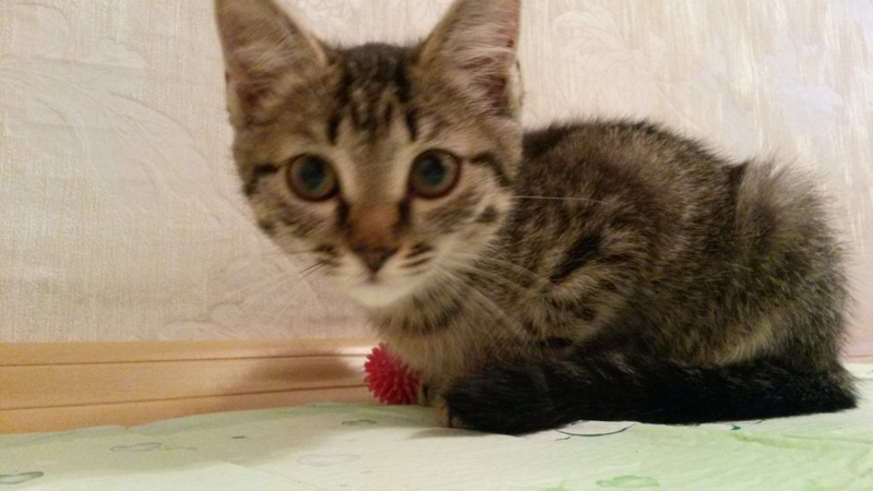 У меня сегодня День Рождения) и именно сегодня нашла котенка, для меня лучшим подарком станет заботливый и любящий хозяин для этой крохи. Возле дороги (рядом с домом №7 по ул. Блюхера) бежала эта малышка... под дождем, я не смогла пройти мимо. Отнесла ее к ветеринару - она здорова, чистенькая, скрее всего недавно выкинули. Девочка очень ласковая, постоянно мурчит, ей не больше 2,5 месяцев.