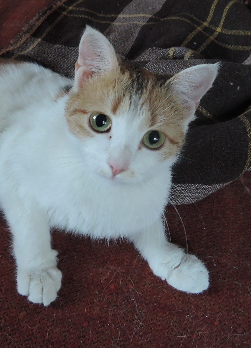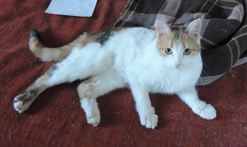 Кошке нашли-таки передержку, обработали от паразитов. Идет период "назад к домашнему очагу". Кошка уже совсем доверяет своей спасительнице Елене, на ласку очень ответная - и мурчать умеет, и ластиться, не агрессивна к аборигенным кошкам. Признала лоток с комкующимся наполнителем.