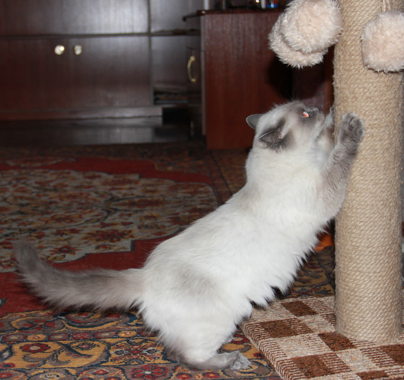 Кошка очень игривая, воспитанная, лоток и когтеточка на "отлично", стоит на неё глянуть, уже мурчит