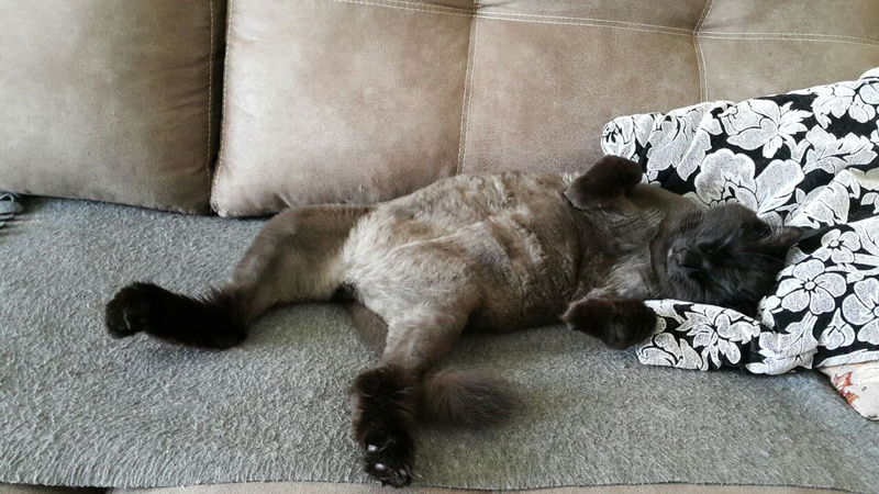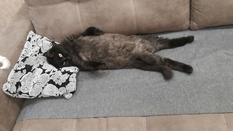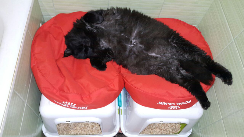 Облюбовал себе "кабинет" -ванную комнату с персональной лежанкой -раковиной). Как наведет порядок в квартире, то идет отдыхать )))).