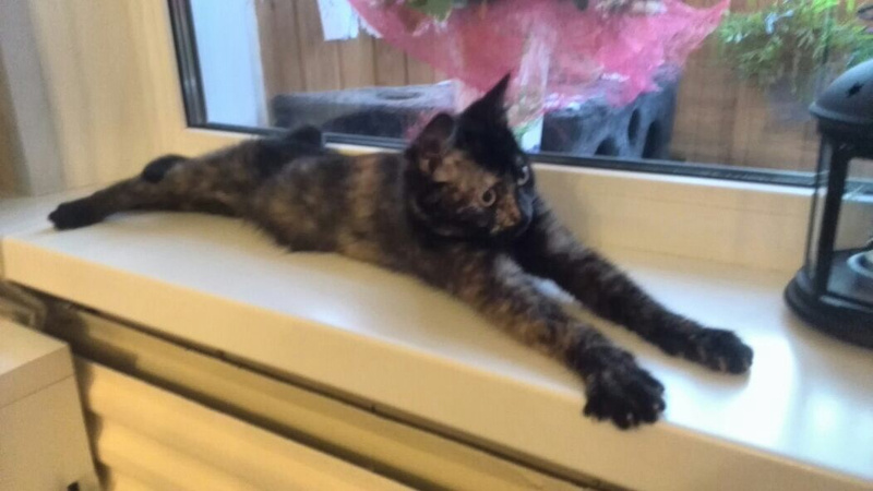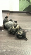 Сейчас это активный и веселый ребенок, очень ласковая, любит мурлыкать. С другими животными легко находит общий язык (сейчас живет с кошками и собакой).