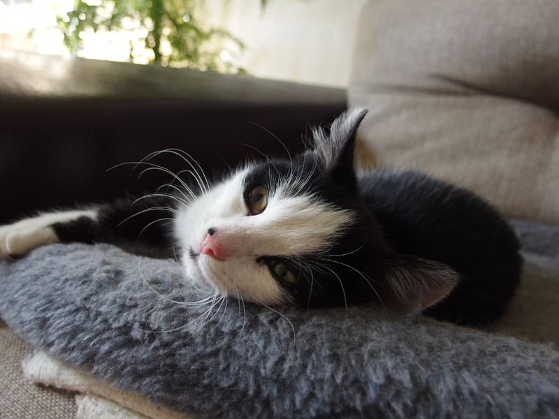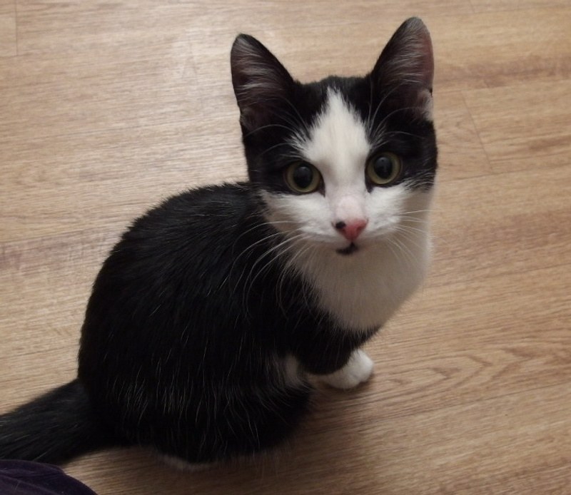 Кто-то решил избавиться от девочки, подкинув ее к нам в подъезд, и совершенно зря, т.к., малышка очень добрая и ласковая, громко мурчит, когда ей уделяют внимание. Сейчас живет у нас в квартире. Кнопочка была осмотрена ветеринаром, который сказал, что девочка развитая и внешне здорова. Вчера устроили ей помывку, Кнопа сильно напугалась, но даже не пыталась пустить в ход коготки или зубки, то есть, она совершенно не агрессивна.