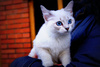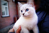 О самой девчонке: Примерно 4мес., безумно красивая(белоснежная, ушки тёмные, на мордочке тёмные полоски, хвостик тёмный в полосочку, глазки большие - голубые), добрая, ласковая, мы уже оставляли себе кошку тоже с проблемной лапкой, пристраивали родственникам, а они её нам отдали со словами - что гиперактивная(цветы скидывает, везде лазит, вещи таскает), этот котёнок примерно такая же, как и наша - косметику и тд надо прятать с видного места, тк она тоже любит что-нибудь поскидывать и этим начать играть, а играть она ооочень любит. Девчонка - пофигистка(никого не боится и если наш кот её пару раз ударит лапкой, ей всё-равно, немножко успокоится и бежит дальше играть). Дружит с собаками, наша одна с ней нянькалась, другие не приняли, и мы не стали рисковать её здоровьем. С кошками тоже дружим. Девочка очень активная, везде прыгает, таскает вещи отовсюду, с нашими кошками бесится, кажется, что она не была только на потолке
