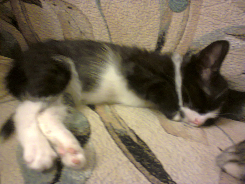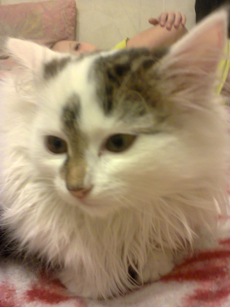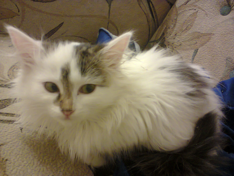 Только одна кошечка беленькая и пушистая сначала сильно шипела на нас, а если ее берешь на руки - замирала. Наверное ее сильно обижали. Сейчас она уже не убегает если идешь мимо, даже удается ее погладить.