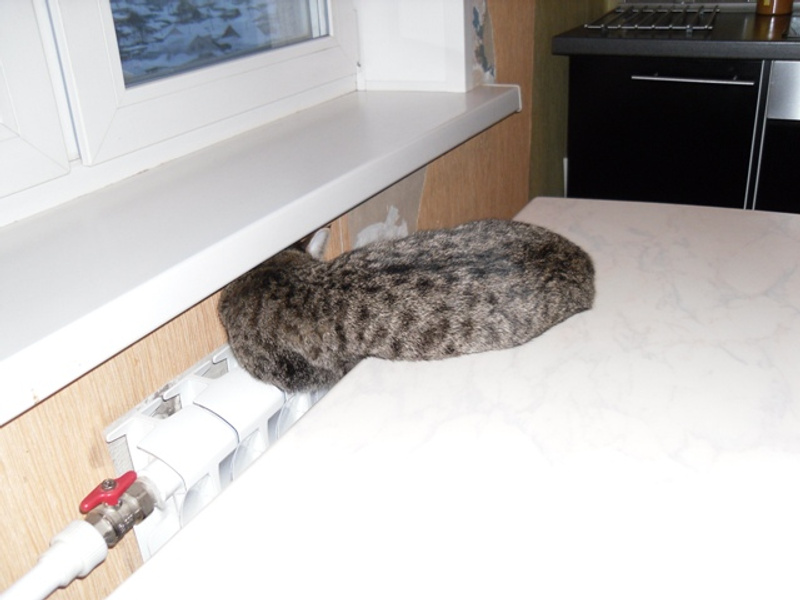 На новогодних праздниках, она решила сделать себе запасы - открыла пакет с мандаринами и три штуки закатила в один угол за панелями - тайничок. Вот такая затейница!!!