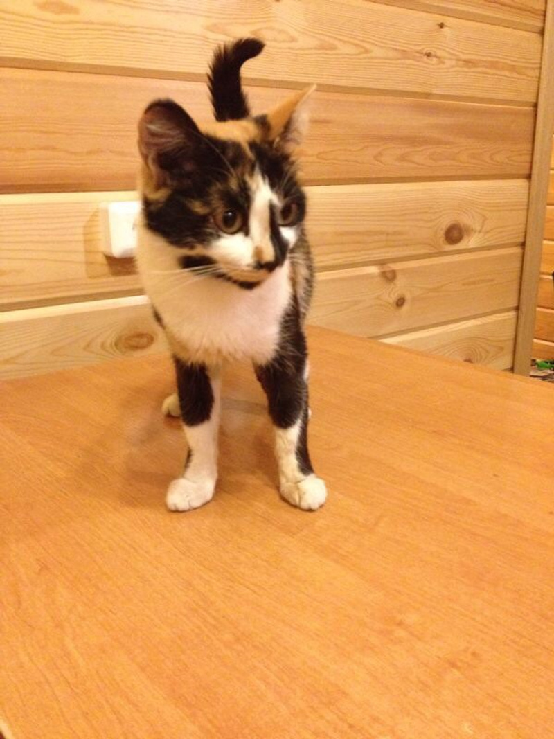 Трехцветная красавица-кошечка родила 4 месяца назад славных котят, остались 2: черно-белый озорной мальчик и рыженькая девочка-милашка:) кушают все, мама очень заботится о них:)