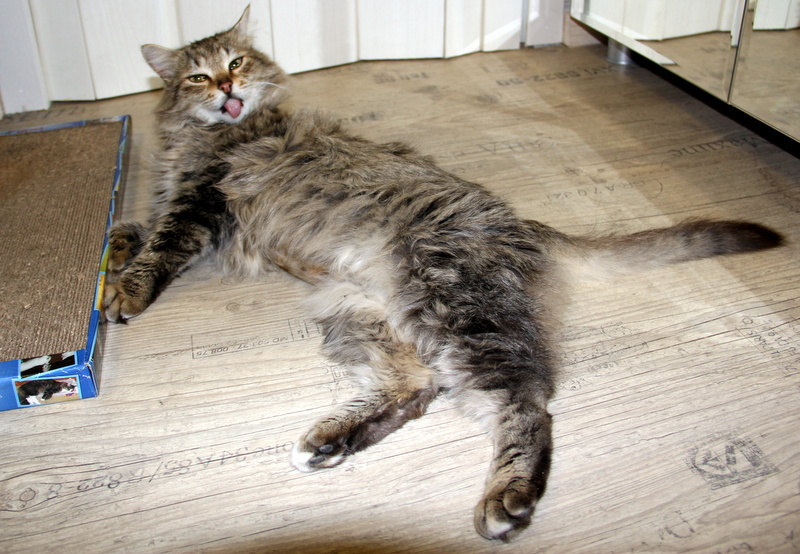 Но чему тут удивляться, котик долго скитался, голодал, мёрз на улице. Очень нуждается к хороших хозяевах!