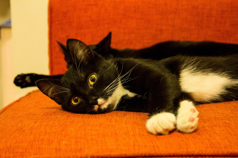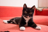 Осмотрен ветеринаром, обработан от паразитов, привит, кастрирован, к лотку приучен. Отлично ладит с другими кошками. Общителен, активен, любит играть, сидеть на руках, громко мурчит.