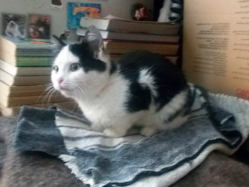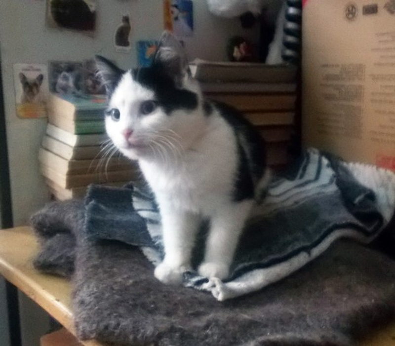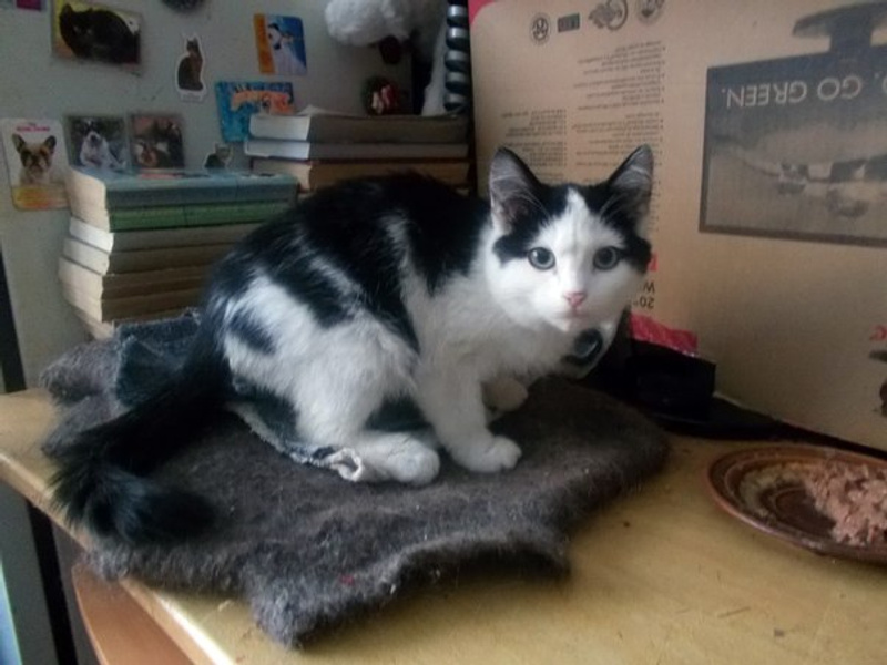 Черно-белый малыш Сеня ждет любящих хозяев. Еще буквально месяц назад Сенечку нашли в подъезде слабенького, истощенного, искусанного блохами. Сейчас Сеня чувствует себя хорошо. Веселый, хоть и скромный мальчик, как и все дети любит играть,кушает хорошо, знает лоточек, от паразитов обработан. Поставлена первая прививка.