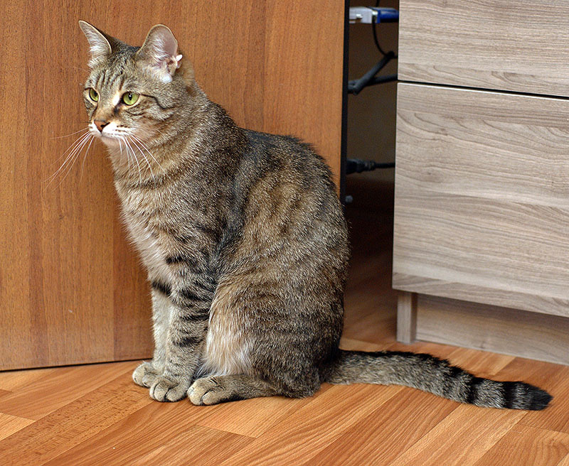 Усатый полосатый кот Потап ждет!Кошку выдумали люди, чтобы приходя с работы, гладить, сидя на диване, забывая про заботы