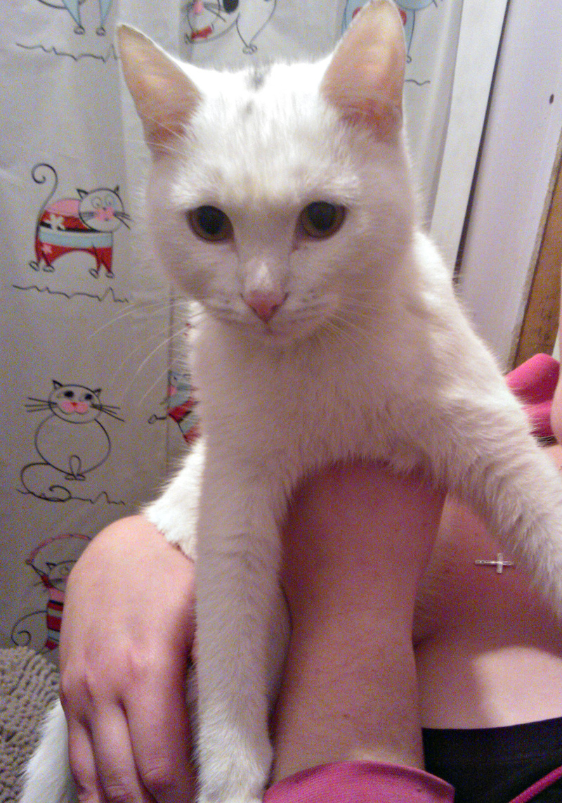 Новосибирск. Беляшик - скромный молодой котик. Возраст 7-8 месяцев. Окрас белый, только на макушке серое пятнышко. Очаровательный милашка, ласковый, добрый, воспитанный. Характер золотой! Любит общаться с человеком, компанейский и доверчивый. Беляшик вырос на передержке в окружении котов и собак, поэтому абсолютно лоялен ко всем животным. Подойдет как для квартиры, так и для частного дома, не на самовыгул. Сейчас живет в доме, в туалет ходит в подпол. Проявляет интерес к охоте на мышей, но он очень добрый и воспринимает это скорее как игру. Очень любит покушать и поваляться, вытянув лапы. Перед отдачей в новый дом будет кастрирован. Катя 89237303752